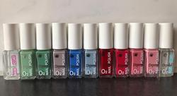 O2; zuurstof- en tinctuur doorlatende nagellak, base- en topcoat. Dit houdt in dat de behandeling van o.a. schimmelnagels gewoon door kan gaan terwijl de nagels voorzien zijn van een mooi kleurtje.